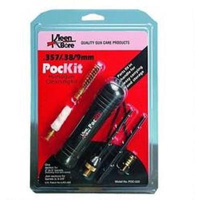 The unique design of Pockit sets allows you to pack a two-section rod in a patented storage handle that also holds a phosphor brush, mop and jag for easy, convenient storing and carrying. The first rod section, with muzzle guard, cleans 2" to 5" barrels including most semi-autos. Add a second section for barrels up to 8-3/8". For .38/.357/9mm caliber.