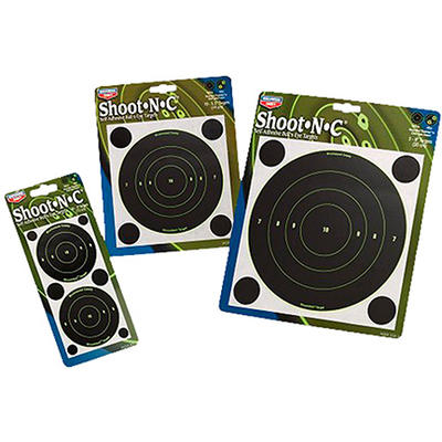 The Birchwood Shoot-N-C Bull's-Eye targets are great for close-range shooting with airguns and sharp shooting with .22 rimfire or centerfire guns. Bullet holes are easy to spot with bright chartreuse rings on these self-adhesive targets. You can design your own custom targets with these easy to place targets. Great for indoor or outdoor use and low-light conditions. Includes repair plasters to lengthen target life.